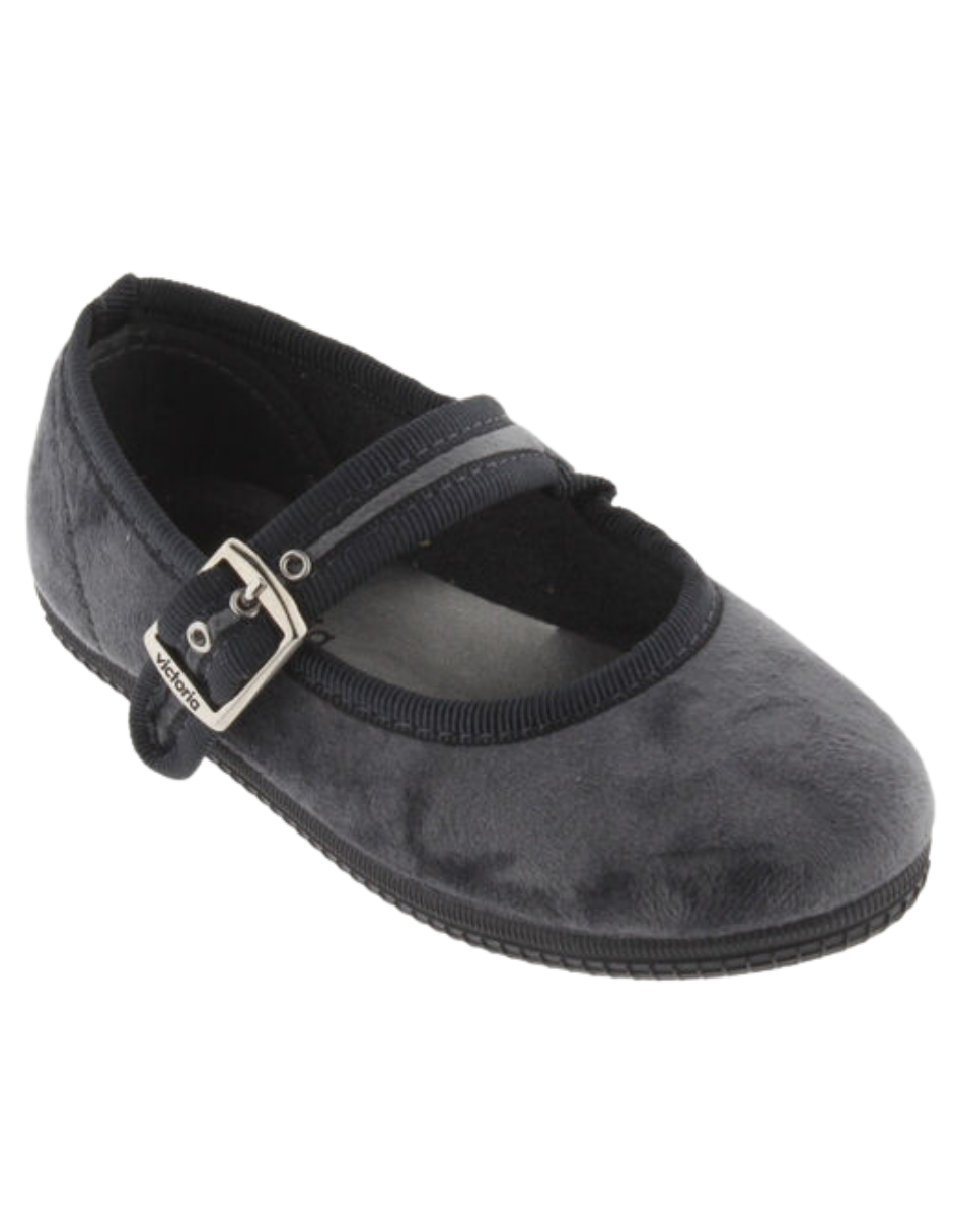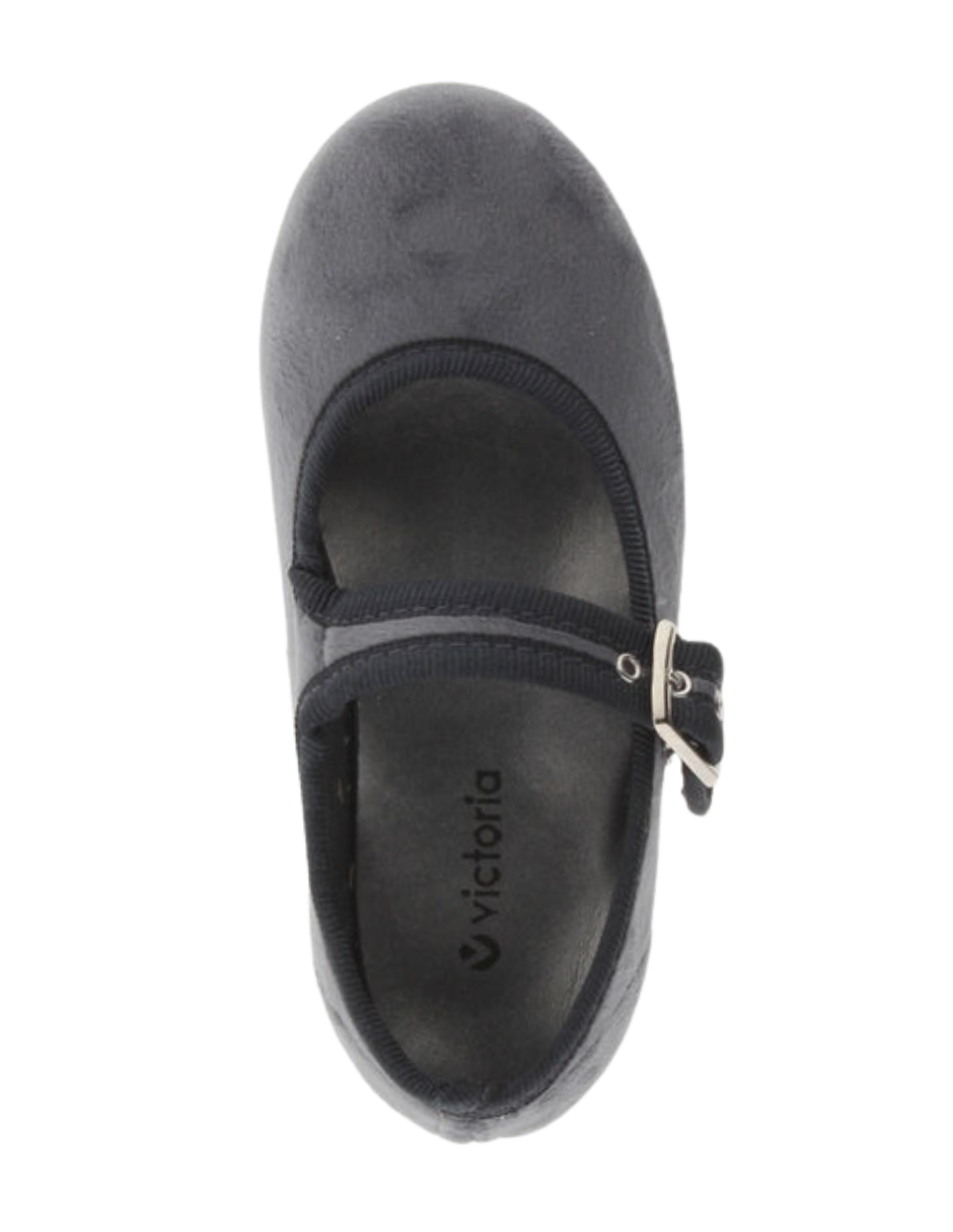 Balerina Victoria Gris Terciopelo con Hebilla para Niña